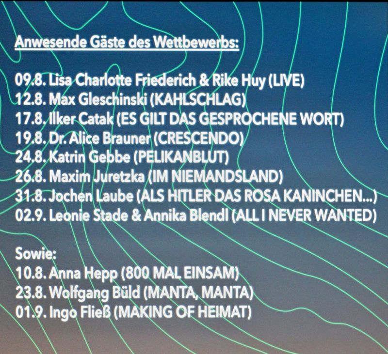 Schirmherr Edgar Reitz meldete sich per Videobotschaft zu Wort: „Ich halte die HEIMAT EUROPA Filmfestspiele für ein innovatives Filmfestival mit tollen Beiträgen in allen Sektionen. Sie sind offenbar das erste Filmfestival in Deutschland, das seit Ausbruch von Corona wieder mit echten Menschen – also im realen Leben und Gästen aus der Filmwelt, die mit dem Publikum über ihre Filme sprechen werden – stattfindet. Denn genau das ist doch das eigentliche Kino: dort wo Menschen zusammenkommen und Filme gemeinsam erleben. Das ist durch nichts zu ersetzen“. Reitz weiter in seiner Grußbotschaft: „Ich freue mich sehr, dass in meiner Heimatregion, die danach dürstet ein neues kulturelles Zentrum zu erleben, jetzt endlich die HEIMAT EUROPA Filmfestspiele ausgerichtet werden können. Ich bin mit Freuden dabei, als Schirmherr, wie ihr mich genannt habt – und wenn das in meiner Macht steht, halte ich auch wie der Papst segnend meine Hand über euch.“