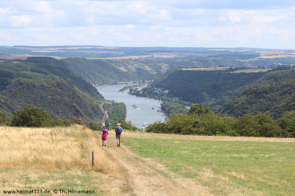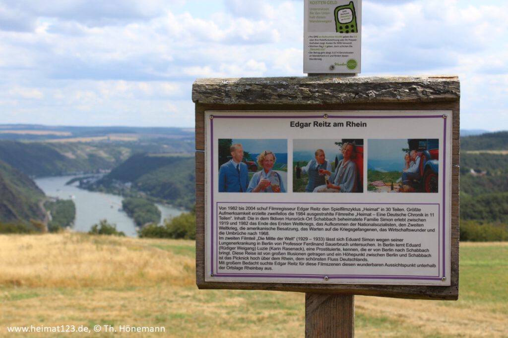 Nordöstlich des Ortes Rheinbay (Ortsteil von Boppard), die Straße heißt Sonnenhof und kann vom Parkplatz am Friedhof aus zu Fuß begangen werden. Der Drehort ist eine Station auf der Traumschleife Rheingold und wird auf Übersichtskarten auch als „Edgar Reitz-Blick“ bezeichnet. Die Aufnahme von oben ist an einem Aussichtspunkt namens Rheinblick nahe der L213 östlich von Karbach entstanden.