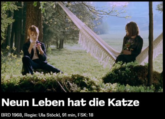 Im Streaming-Portal der Deutschen Kinemathek ist unter der Überschrift Female Perspecitves noch bis zum 14. Juli Ula Stöckls Debut-Langfilm Neun Leben hat die Katze kostenlos anzusehen.