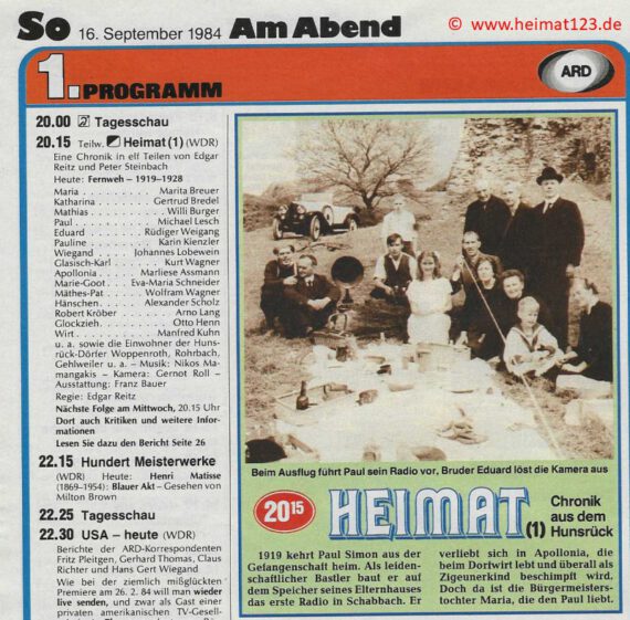 Heute auf den Tag genau vor 40 Jahren, am Sonntag, 16. September 1984, lief HEIMAT zum ersten Mal über die Bildschirme und […]