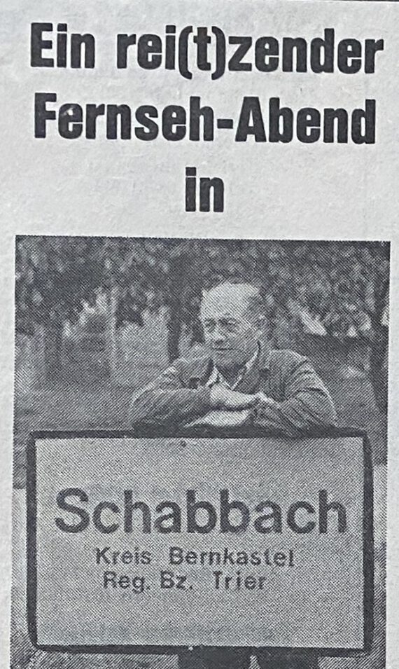 Anlässlich der Erstausstrahlung von Teil 8 von HEIMAT besuchten Edgar Reitz und Marita Breuer im Oktober 1984 das Gasthaus Molz in Woppenroth.