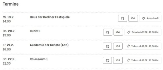 Nutzen Sie die Chance, eine der drei weiteren Aufführungen auf der Berlinale anzusehen.