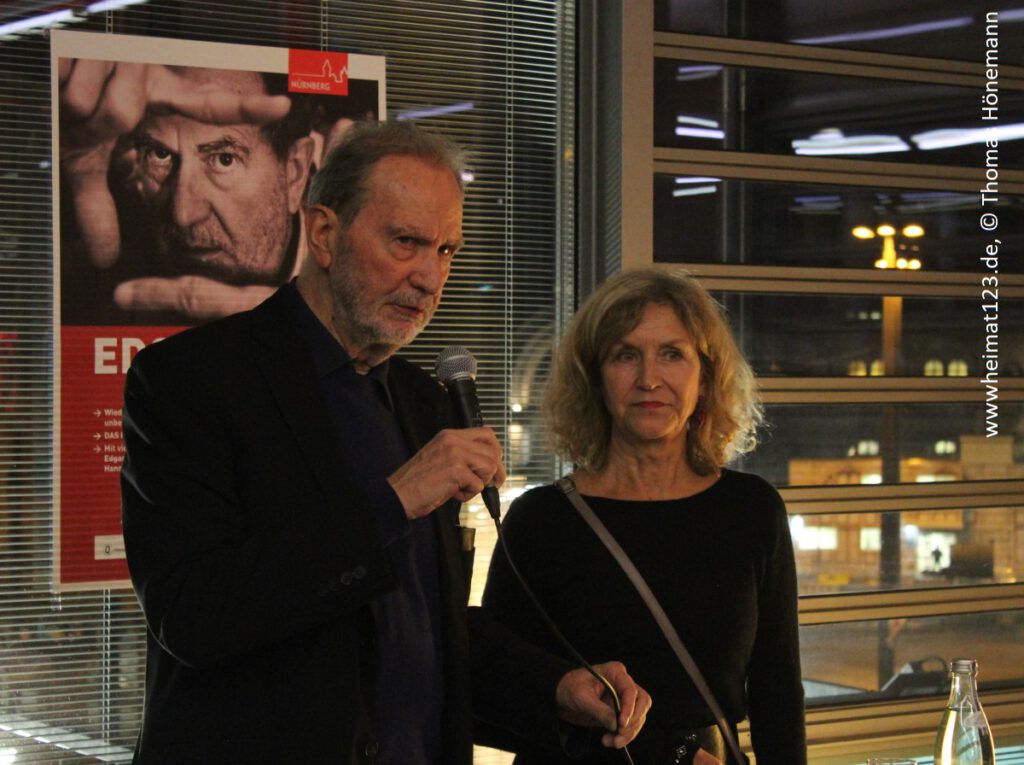 Eine so umfassende Retrospektive des Gesamtwerkes von Edgar Reitz hat es bisher nicht gegeben. Kaum etwas, was in den zwei Monaten von Nürnberg (5.1.-4.3.) nicht über die Leinwand flimmert. Christiane Schleindl und ihr Team im Filmhaus Nürnberg haben ganze Arbeit geleistet und großen Mut bewiesen, keinen Aufwand gescheut, und der Erfolg gibt ihnen mehr als Recht. Die Nürnberger Retrospektive kommt beim Publikum gut an. Volle Säle, äußerst interessierte und begeisterte Zuschauer, die den vielfach im Kontext der Filme auftretenden Gästen, und davon gibt es viele (siehe Programm), mit großer Neugier und Leidenschaft zuhören. Ihre Fragen offenbaren großen Sinn für Ästhetik, ein lebendiges Interesse für den Blick hinter die Kulissen und die Geschichten hinter den Geschichten, und emotionale Beteiligung ebenso wie den Blick für die historische Bedeutung des Erzählten. Und sie werden nicht müde zu fragen. Gestern, zum Abschluss der HEIMAT, waren Edgar Reitz, Marita Breuer und Karin Rasenack zu Gast. Der Meister und zwei wundervolle Schauspielerinnen, die HEIMAT ganz wesentlich geprägt haben. Und die umgekehrt von HEIMAT geprägt wurden. Über fünfunddreißig Jahre nach Drehschluss stehen sie für ihre Arbeit ein, erinnern sich gerne, wissend, dass damals etwas großes, wundervolles entstanden ist, ein Werk, wie es Edgar Reitz völlig frei von Pathos formuliert, mit dem es das Schicksal gut gemeint hat, das geboren ist aus einer Vielzahl von glücklichen Fügungen, die sich allein mit dem Wort „Zufall“ nicht beschreiben lassen.