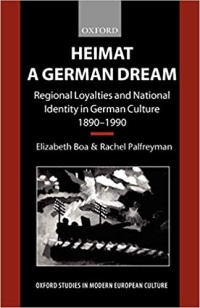 | Elizabeth Boa and Rachel Palfreyman: Heimat – A German Dream. Regional Loyalities and National Identity in German Culture 1890-1990 Oxford (Oxford University Press) 2000, ISBN 0198159226, 234 S., als TB erschienen in Bern (Europäischer Verlag der Wissenschaften Peter Lang) 2000, ISBN 3906765873 Eine ausführliche Rezension dieses Bandes von Hans Krah auf hohem wissenschaftlichen Niveau finden sie hier. | ![]() int. Buchhandel 49,95 $ |
