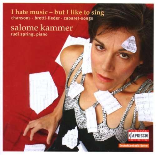 | Salome Kammer – I hate Music – but I like to sing Im Mai 2007 hat Salome Kammer – nachdem sie bereits an vielen CDs neben anderen Künstlern mitgewirkt hatte – gemeinsam mit dem Pianisten Rudi Spring ihre erste eigene CD veröffentlicht. Unter dem Titel „I hate Music – but I like to sing“ (übrigens keine Selbstoffenbarung, sondern der Titel eines Songs von Leonard Bernstein) erschien bei Delta-Music eine Zusammenstellung von Chansons, Brettl-Liedern und Cabaret-Songs. | ![]() |