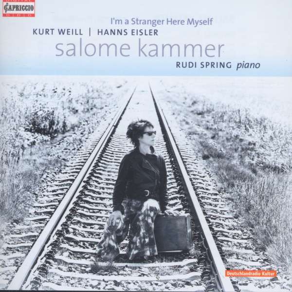 | Salome Kammer, I’m a Stranger Here Myself begleitet von Rudi Spring, erschienen 2013 bei Capriccio, EAN 0845221051543 Die Komponisten Kurt Weill, Hanns Eisler und der Dichter Bert Brecht haben alle Faszinationen und Abgründe der Ferne und der Fremde durchlebt. Welch ein Glück muss es im Berlin der 1920er Jahre gewesen sein, als Weill und Brecht mit ihren Songs, die immer wieder von der Ferne, von der Fremde erzählten, so große Erfolge hatten. Sie haben damals einen unverwechselbaren Stil kreiert, der bis heute in seiner Mischung aus Populärmusik, höchster musikalischer Raffinesse und politischem Anspruch einmalig ist. Salome Kammers Repertoire kann nicht in Sparten und Fächer eingeordnet werden. Es umfasst Avantgarde-Gesang und virtuose Stimmexperimente, klassisches Melodrama, Liederabende, Dada-Lyrik, Jazzgesang oder Broadwaysongs. Zahlreiche Werke der neuen Musik hat Salome Kammer international uraufgeführt. Rezension: „Die Stücke Weills und Eislers sind für Salome Kammer, was man von der Vokalartistin erwartet: ein Catwalk der Rollen und Posen und Kunstlied-Brechungen, der verruchte und verrauchte Diseusentöne nicht meidet, der Vielfalt doppelbödiger Ausdrucksgesten aber stets das trefflich sitzende Klanggewand verpasst. Rudi Spring, mit seinem ,,Brecht-Triptychon“ auch als Komponist vertreten, spielt dazu in superber Prägnanz den Klavierpart.“ (stereoplay, April 2013) | ![]() |