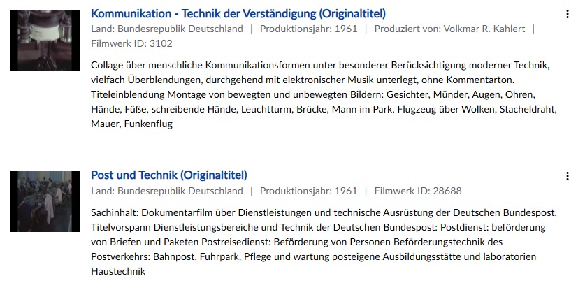 Post und Technik (1961), ein Kurzfilm (30:29 min) über die voranschreitende Automatisierung bei der Deutschen Bundespost in den Bereichen Briefpost, Transport, Bankwesen, Telegraphie und Telekommunikation.